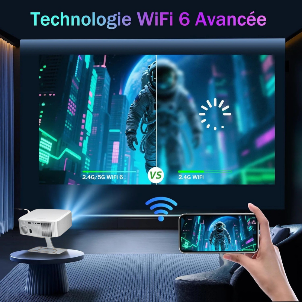 Honnêtement, je ne m’attendais pas à ce que ce projecteur soit aussi performant. L’image est nette, les couleurs éclatantes, et il s’est connecté à mon téléphone en quelques secondes. On a vraiment l’impression d’avoir un cinéma à la maison, directement dans la chambre.